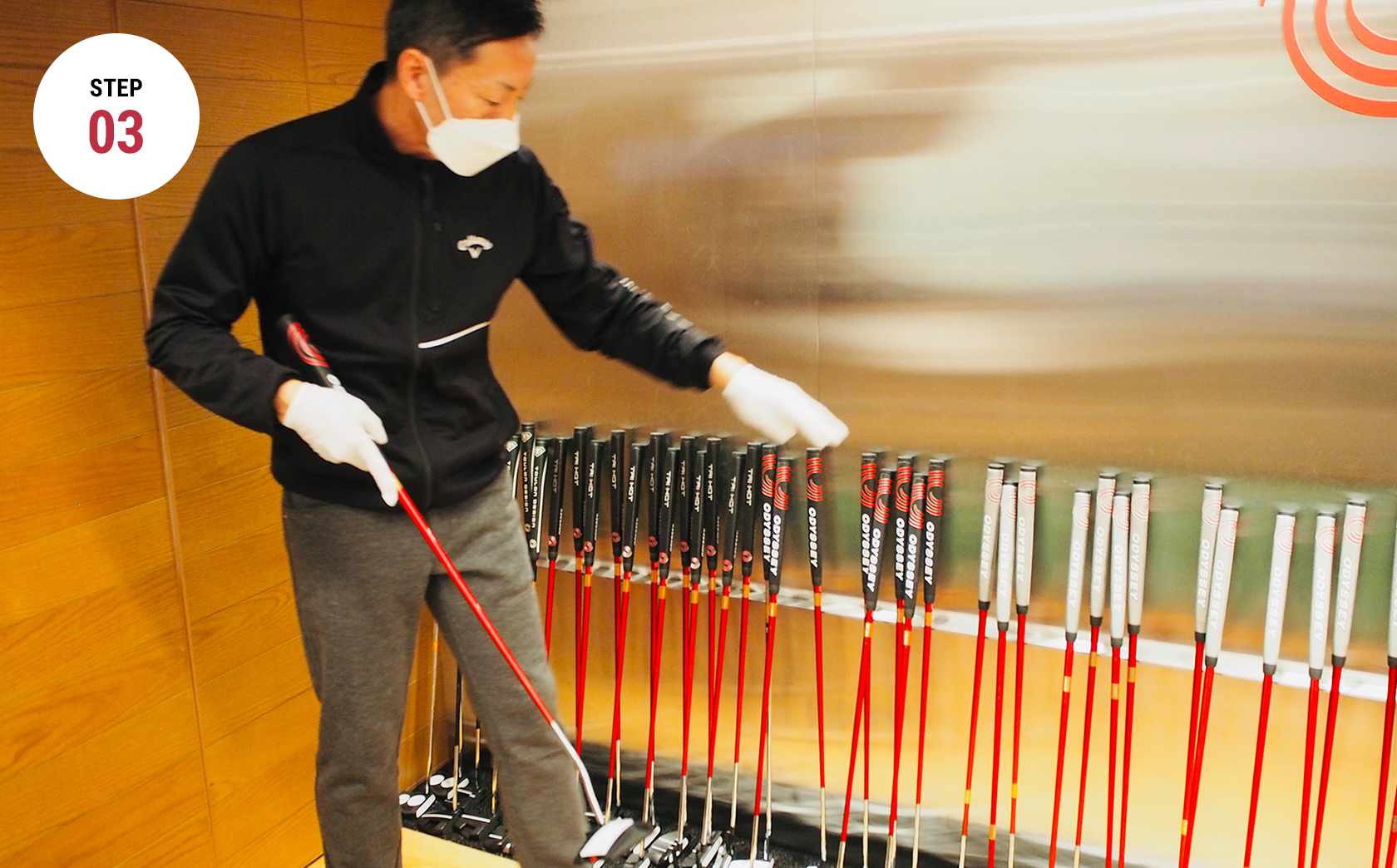 専任のスペシャリストが、パッティングの2大要素である「距離感」、「方向性」を改善するために、お客様に必要な5つの要素を抽出し、豊富なバリエーションが揃うオデッセイパターの中から最適なパターをお選びします。