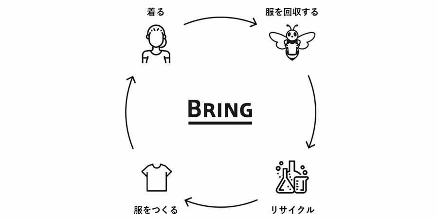 衣料品・製品プラスティックのリサイクルプロジェクト「BRING」(日本環境設計株式会社)との連携により、アパレルの回収・仕分け・リサイクルに取り組んでいます。