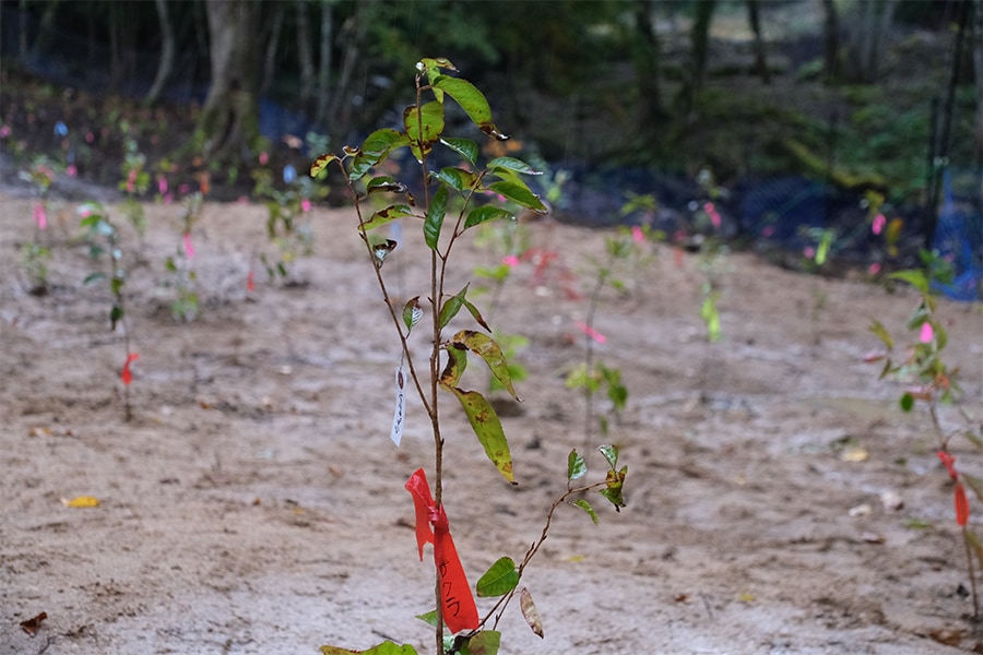 「キャロウェイの森」では、売上金の一部を寄付し、地域と協働しながら森の多様性を取り戻す活動を行っています。鳥取砂丘につながる千代川の源流域において、植林や獣害対策等の取り組み、様々な樹種が混在する本来の姿を目指して整備を進めています。