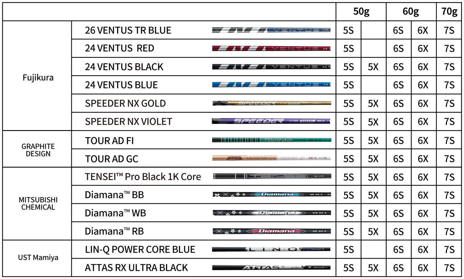 ※ATHLEMAX、TENSEI GRAY for Callaway、SPD STAR for Callaway も対応いたします。